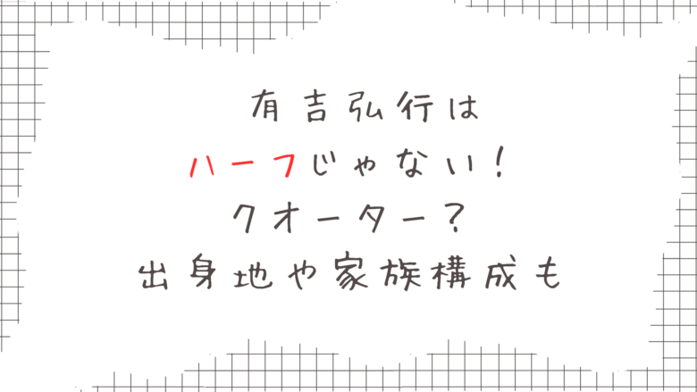 お笑いタレントや司会者として活躍している有吉弘行(ありよし ひろいき)さん。 日本人離れした整った顔立ちもあいまって、有吉弘行さんはハーフなの?クオーターなの?と注目を集めています! 出身地や家族構成も気になりますよね。 この記事でわかること ... -