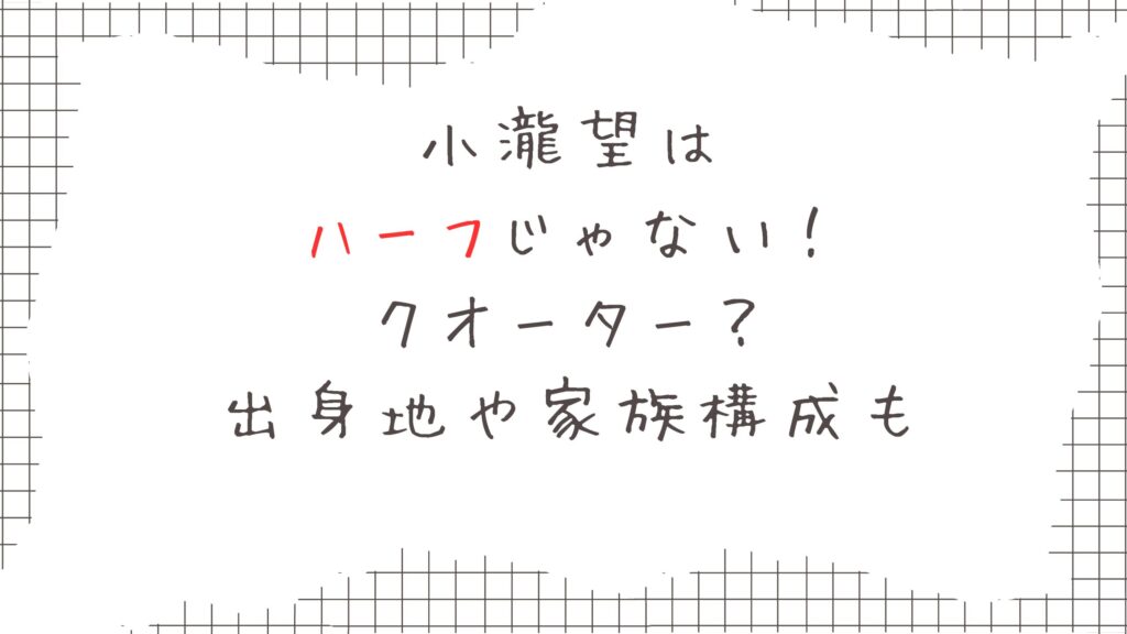 アイドルや俳優として活躍している小瀧望さん。 日本人離れした整った顔立ちもあいまって、小瀧望さんはハーフなの?クオーターなの?と注目を集めています! 出身地や家族構成も気になりますよね。 この記事でわかること 小瀧望はハーフなのか 小瀧望はク... -