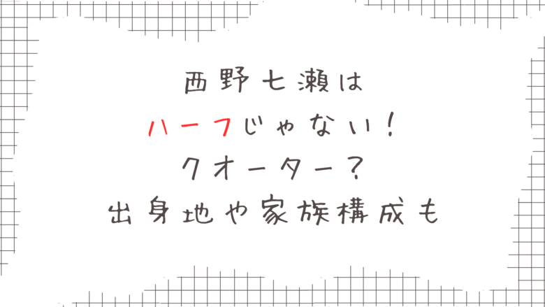 乃木坂46の元メンバーで、女優やファッションモデルとして活躍している西野七瀬さん。 日本人離れした整った顔立ちもあいまって、西野七瀬さんはハーフなの?クオーターなの?と注目を集めています! 出身地や家族構成も気になりますよね。 この記事でわか... -